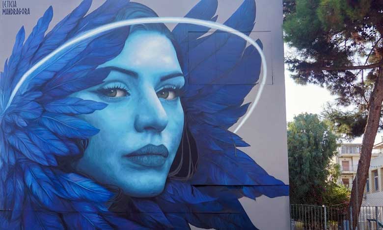 Leticia Mandragora è nata a Madrid e si è trasferita a Napoli all’età di 15 anni, dove è rimasta affascinata dall’arte dei graffiti. La caratteristica distintiva è l’uso estensivo del colore blu nei suoi ritratti. Come afferma l’artista, il blu “è un colore speciale, mi è venuto in mente per caso. Con il passare del tempo ha trovato la sua razionalità, ho trovato collegamenti con il mondo spirituale dell’immagine femminile. Mi serve per ampliare la visione materialistica del volto ed elevarla alla sfera emotiva. Lascio colorati solo gli occhi, perché per me sono la finestra tra lo spirito e la realtà”.
